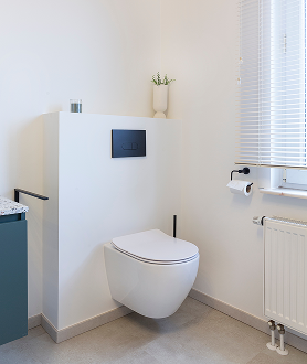 ✔ Zwarte accenten – Moderne armaturen en douche voor een strakke look.